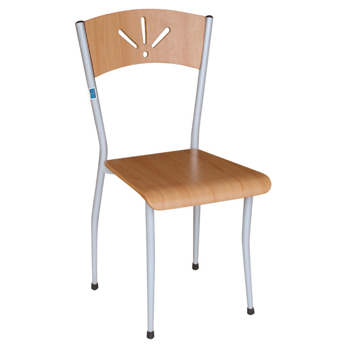 Chất liệu | Ghế tĩnh khung thép, đệm tựa gỗ sơn PU vàng. |