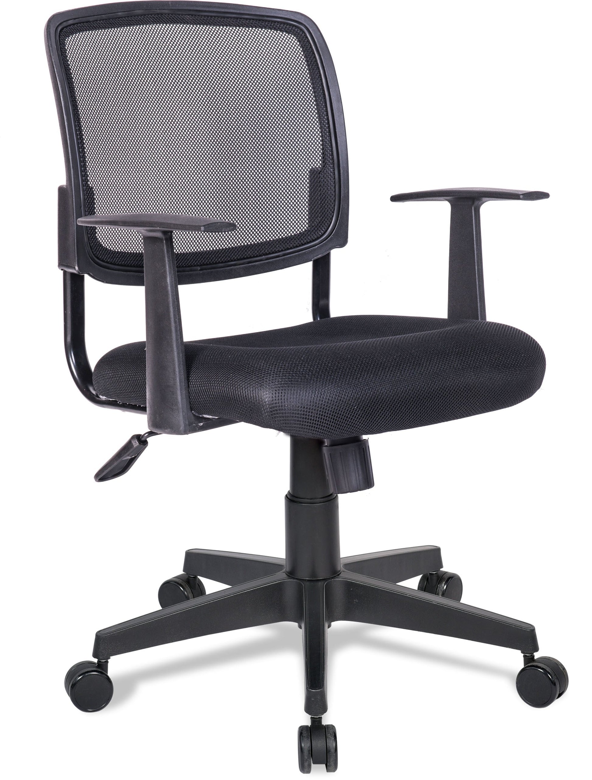 Ghế lưới chuyên viên khung tựa nhựa kết hợp , đệm bọc vải lưới xốp, chân nhựa, tay nhựa chữ T.