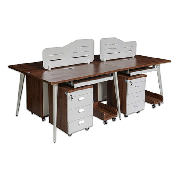 Modul làm việc 4 chỗ ngồi sử dụng khung thép sơn tĩnh điện kết hợp mặt Melamine cao cấp. Vách ngăn sử dụng thép sơn tĩnh điện.