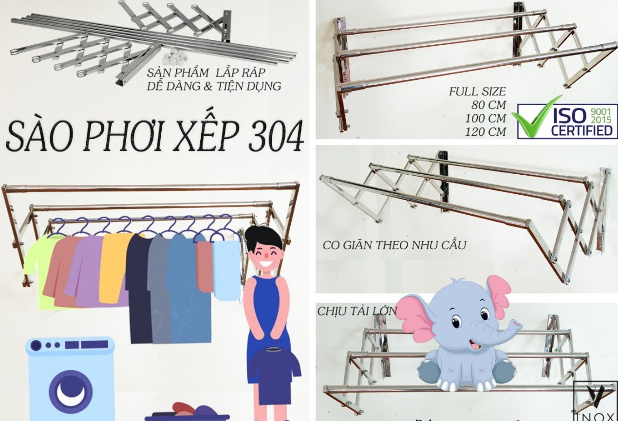 Sào phơi đồ inox - Sào treo tường 2 thanh 1m5 INOXVIN