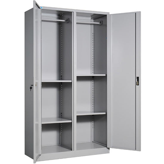 - Tủ gồm 2 khoang, mỗi khoang có 2 đợt di động và một suốt treo quần áo.